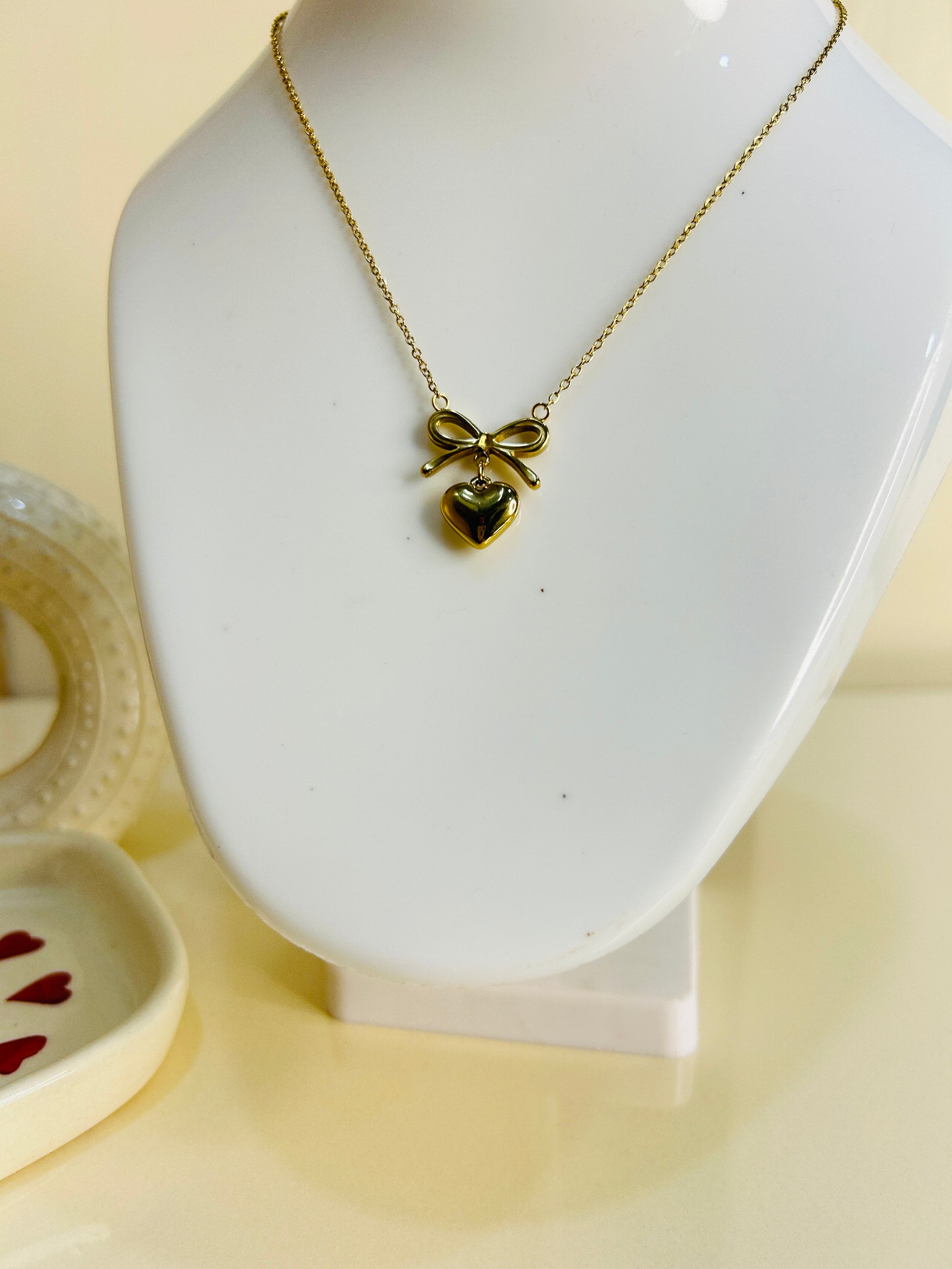 This Bae Bow necklace features a delicate bow and heart design, perfect for adding a touch of romance to any outfit. Its stunning design is sure to catch the eye and make a statement. With its viral popularity, this necklace is a must-have accessory for any fashion-forward individual.