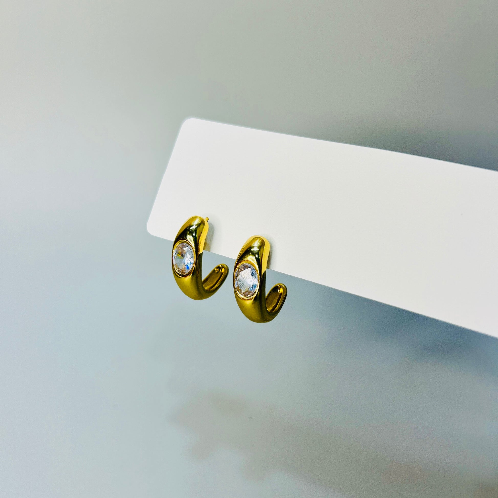 These Bella studs are a must-have for those seeking a touch of romance in their accessories. The half hoop design, combined with stunning stones, adds an elegant and sophisticated touch to any outfit. Elevate your style with these delicate yet eye-catching studs.