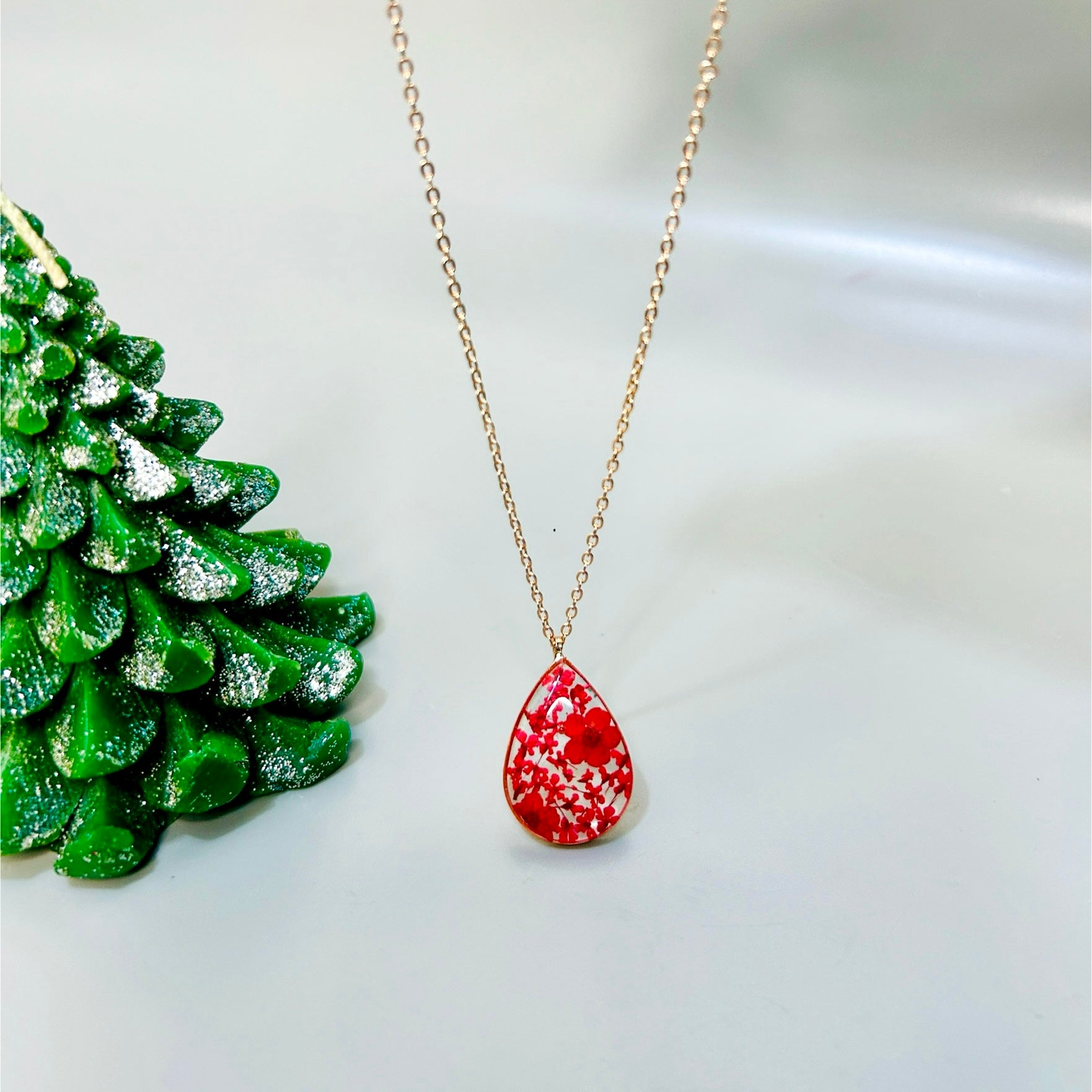 Materials- Gold/ Silver rim, pressed flower, resin, brass chain