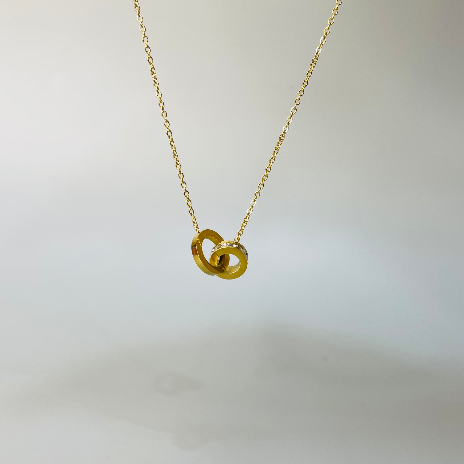 This dainty harmony necklace features linked circles and is studded with zircon for a touch of romance. The delicate design exudes elegance and sophistication, making it the perfect addition to any outfit. Crafted with precise attention to detail, this necklace is a must-have for any jewelry collection.